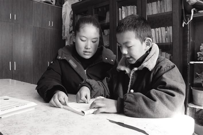 索朗曲珍輔導(dǎo)弟弟學(xué)習(xí)。文/記者 婁夢琳 圖/記者 孫敏
