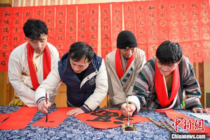 寫(xiě)春聯(lián)、掛燈籠、做湯圓……在綿綿的藏歌聲中,留校西藏學(xué)生向陪伴他們連續(xù)度過(guò)了兩年春節(jié)的“代表媽媽”們敬獻(xiàn)了潔白哈達(dá),而“代表媽媽”則為她們的“西藏孩子”們圍上了紅色圍巾,互相傳遞著美好祝愿。