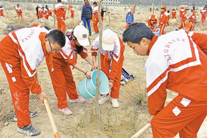 西藏林芝廣東實驗學校組織學生參加義務(wù)植樹活動
