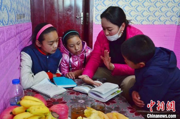 而住在才讓吉家的三個學(xué)生,都是沒條件上網(wǎng)課,且家在距離縣城較遠(yuǎn)的牧區(qū)。家長們把學(xué)生主動送到老師家,希望才讓吉能輔導(dǎo)孩子們的功課。
