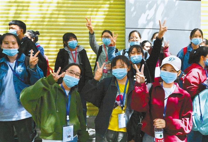 圖為7日上午,首場考試結(jié)束,考生走出考場,為自己加油。記者 李洲 洛桑 次旺 唐斌 攝影報道