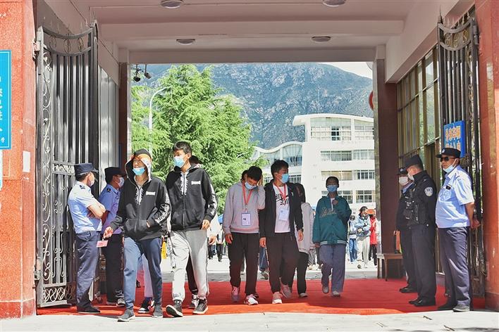 7月9日上午,隨著最后一門藏語文考試的交卷,西藏2020年普通高校招生全國統(tǒng)一考試圓滿結(jié)束,考生們放下手中的筆,為高中生涯畫上了圓滿的句號,將啟航新征程。今年,西藏共32973名考生(不含報(bào)考對口高職考生)報(bào)考,缺考589人,設(shè)10個考區(qū)、32個考點(diǎn)、1162個考場。有17名殘疾考生申請了考試合理便利,其中包含2名盲人考生。全區(qū)共安排高考考試工作人員6000余人,抽調(diào)高考評卷教師316人。在為期3天的考試中,西藏各考點(diǎn)考試考風(fēng)考紀(jì)良好、組織規(guī)范有序、安全保密到位,考試實(shí)施平穩(wěn)順利。