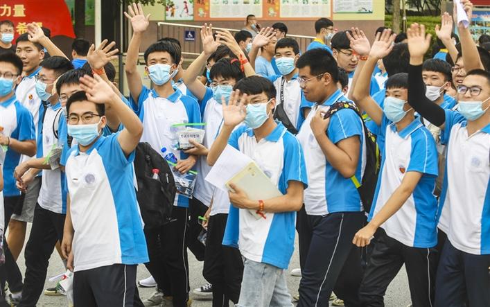 8日,河北文安縣第一中學(xué)考點(diǎn)的高考生走出考場。新華社