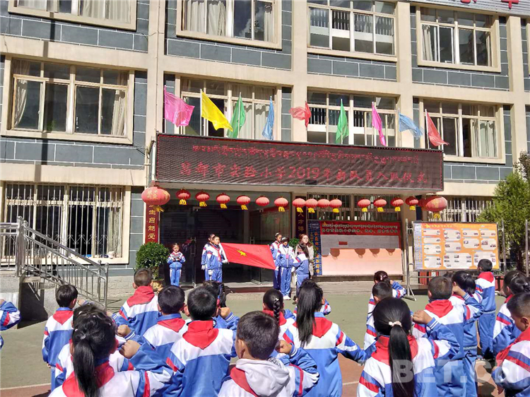 圖為昌都市實(shí)驗(yàn)小學(xué)在學(xué)校操場(chǎng)開(kāi)展新少先隊(duì)員入隊(duì)儀式