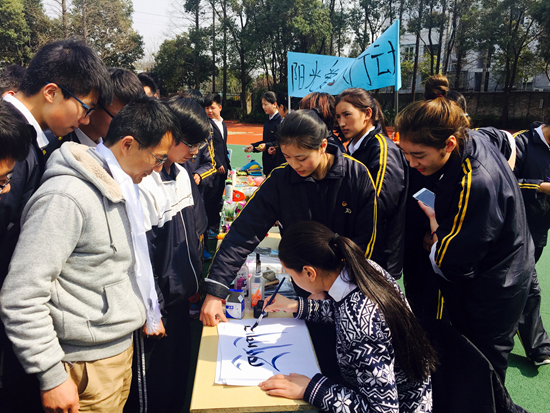 上海市浦東外事服務(wù)學(xué)校師生在校內(nèi)參加愛心義賣活動。受訪者供圖