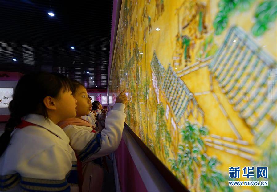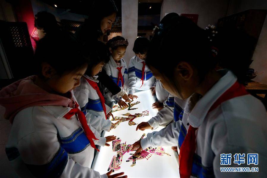 10月19日,小學生們在中國灤州皮影博物館內(nèi)參觀一幅皮影長卷。 今年以來,河北省灤州市橫渠實驗小學成立皮影興趣社團,在當?shù)氐闹袊鵀粗萜び安┪镳^開設校外課堂,組織學生定期參觀、學習,增強學生對傳統(tǒng)文化的了解。