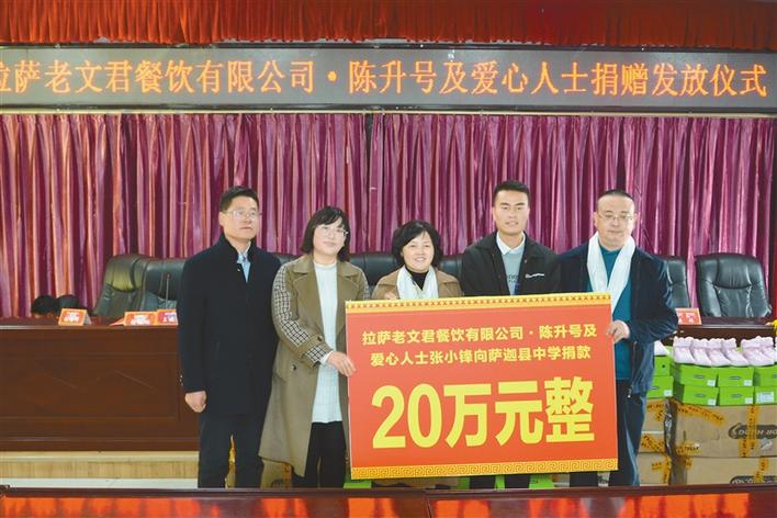 拉薩老文君餐飲有限公司·陳升號董事長王曉燕說,希望通過自己的善舉,能夠盡可能改善貧困地區(qū)學生的學習生活條件,激發(fā)學生學習的積極性和主動性,從而樹立正確的人生觀和價值觀。未來,我將盡自己最大努力幫助更多需要幫助的學生和學校,也希望有更多的社會愛心人士關注教育,多作貢獻。