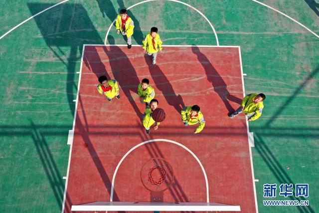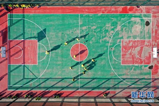 11月12日,學生在大課間打籃球(無人機照片)。 位于山東省青島市即墨區(qū)的青島藍谷高新區(qū)東皋埠小學是一所鄉(xiāng)村學校,近年來,學校開展以乒乓球、籃球、跳繩等運動為主的大課間活動,讓孩子們在享受運動的同時愉悅身心,增強體質(zhì)。 新華社發(fā)(梁孝鵬攝)