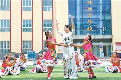“我可喜歡跳舞了!在這里我還交到了很多好朋友!”站在隊(duì)伍中間的是五年級(1)班的祁木措,她甩著辮子驕傲地說,自己還參加過學(xué)校的廣播站。