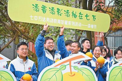 12月4日,成都七中萬達學校首屆“添柚節(jié)”開幕。“添柚節(jié)”覆蓋了多個年級,設(shè)置了多項活動,并融入學科元素,如初一年級結(jié)合生物和美術(shù)學科,或用柚子做小零食進行義賣,或在柚子上繪出不同的圖案;初二年級則結(jié)合地理和美術(shù)學科,描繪出一幅幅中國的“水果”地圖;高三年級的學生摘下柚子與老師一同品嘗豐收的味道。