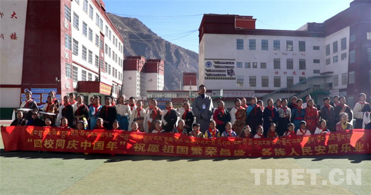 活動中,孩子和老師們都穿著民族特有的節(jié)日盛裝,臉上洋溢著幸福的笑容,手舉象征著美好祝福的白色哈達(dá),發(fā)自內(nèi)心地說出了“祝祖國繁榮昌盛”“祝中華兒女合家歡樂、身體健康、扎西德勒”等純潔而又真切的祝福。