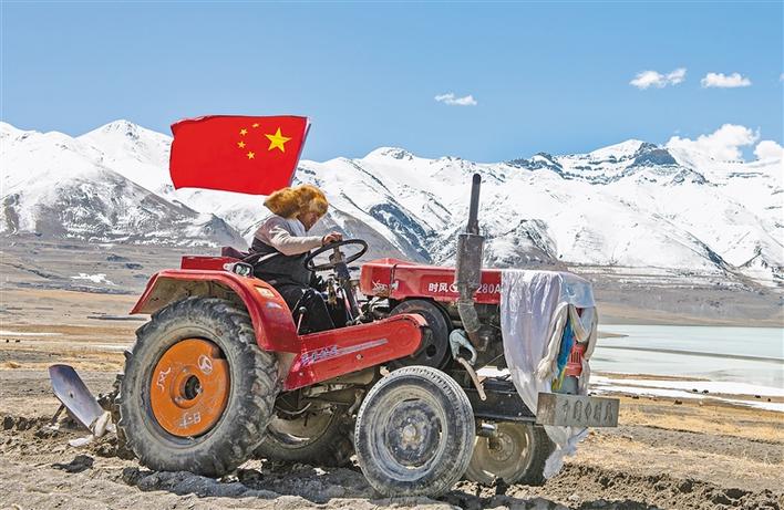 4月30日,拖拉機在西藏那曲市尼瑪縣當(dāng)穹錯旁舉行的春耕典禮上行進。新華社記者 侯捷 攝