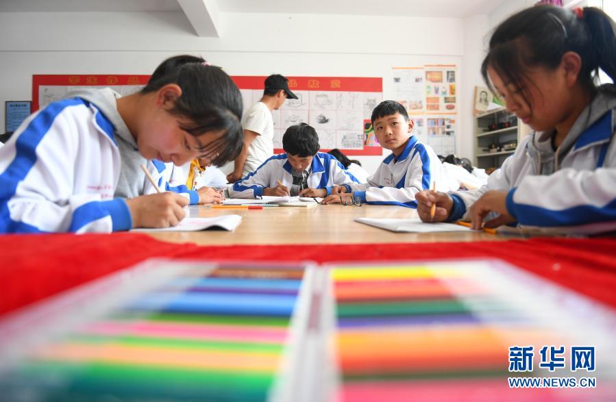 位于芒康縣鹽井納西民族鄉(xiāng)的鹽井中學學生在上美術(shù)課(2019年6月5日攝)。鹽井中學是西藏第一所在鄉(xiāng)村設立的中學。新華社記者 晉美多吉 攝