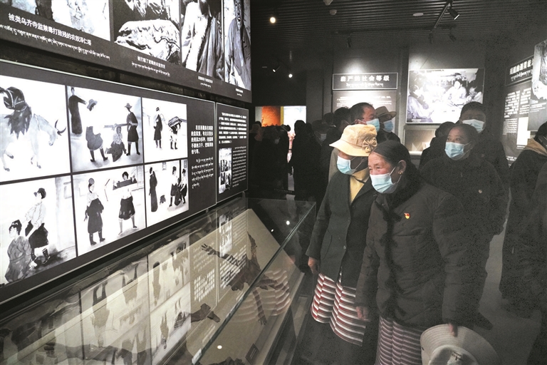 圖為4月7日上午,在西藏百萬農(nóng)奴解放紀念館參觀的堆龍德慶區(qū)基層黨員。 索朗多杰攝