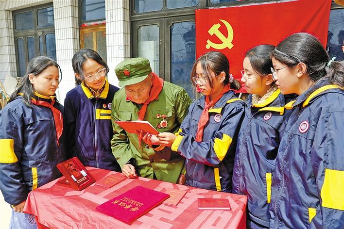 圖為南通西藏民族中學(xué)學(xué)生聽老紅軍講革命故事。 圖片由南通西藏民族中學(xué)提供