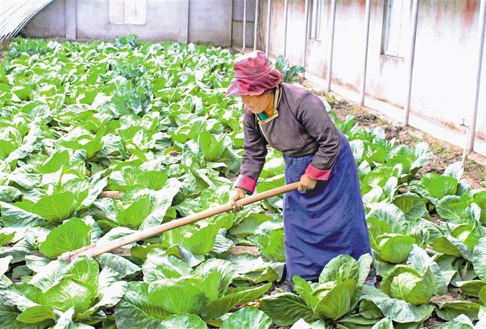 圖為洛扎縣建檔立卡貧困戶(hù)在吉堆農(nóng)業(yè)科技示范園內(nèi)種植蔬菜。 巴桑旺姆 攝