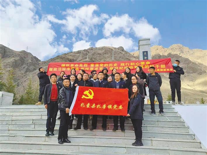 圖為活動(dòng)結(jié)束后全體黨員干部在革命烈士紀(jì)念碑前合影留念。次仁片多 索朗瓊珠 攝