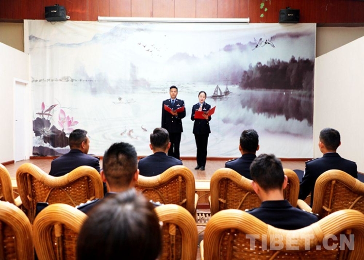舉辦警營朗讀活動。當民警達瓦卓瑪朗讀完《我把黨來比母親》,全場民警自發(fā)唱起了《唱支山歌給黨聽》?!俺礁杞o黨聽,我把黨來比母親……”每一句歌詞都唱出了西藏各族兒女對黨最真摯的感情。