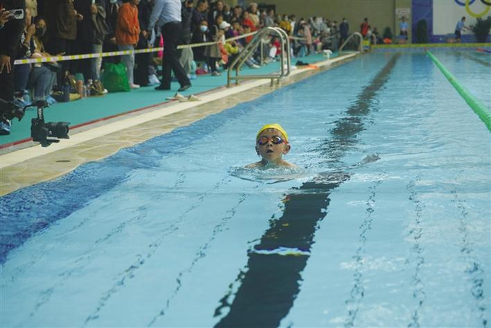 比賽現(xiàn)場,泳池邊一派熱鬧景象,小朋友們摩拳擦掌,舒展筋骨,認(rèn)真做著熱身運(yùn)動?!班兀 睒屄曧懫鸬哪且豢?,選手們一個個猶如離弦之箭在50米的賽道上沖刺,朝著對岸終點(diǎn)勇往直前。選手們?nèi)σ愿埃瑺幏謯Z秒,碧水中揚(yáng)起層層水花,完美展現(xiàn)了參賽選手的風(fēng)采和游泳運(yùn)動的魅力。家長們在一旁打氣助威,拍視頻記錄著這一刻,選手奮力朝著對岸游動,永不放棄的精神,感動著觀看比賽的每一個人,賽場頓時暖了起來。