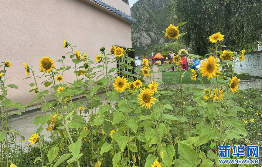 幼兒園內(nèi)的向日葵(7月27日攝)新華網(wǎng) 旦增努布 攝