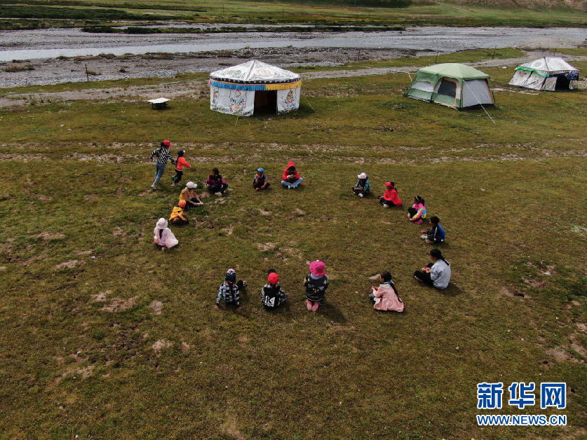 牧民轉(zhuǎn)場到夏季草場之后,居住分散,放假的孩子們往往無人看管。為解決這個問題,瑪沁縣從2018年起開辦“育苗加油站”,聘請暑假回鄉(xiāng)的大學生,組織青少年開展形式多樣、內(nèi)容豐富的活動。