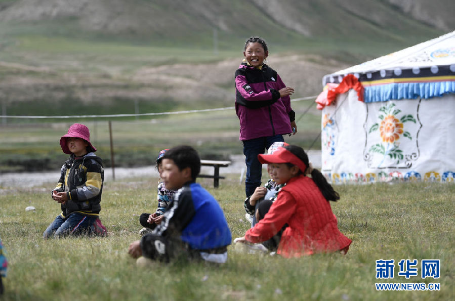8月2日,在青海省果洛藏族自治州瑪沁縣下大武鄉(xiāng)年扎村的“育苗加油站”,孩子們在一起玩耍。新華社記者 張龍 攝