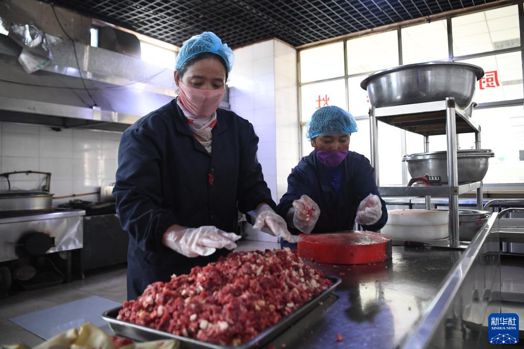 碌曲縣藏族中學(xué)學(xué)生食堂的工作人員在給學(xué)生準(zhǔn)備晚飯(8月30日攝)。新華社記者 杜哲宇 攝