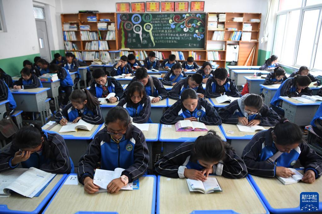 碌曲縣藏族中學(xué)的高三學(xué)生在教室里看書(8月30日攝)。新華社記者 陳斌 攝