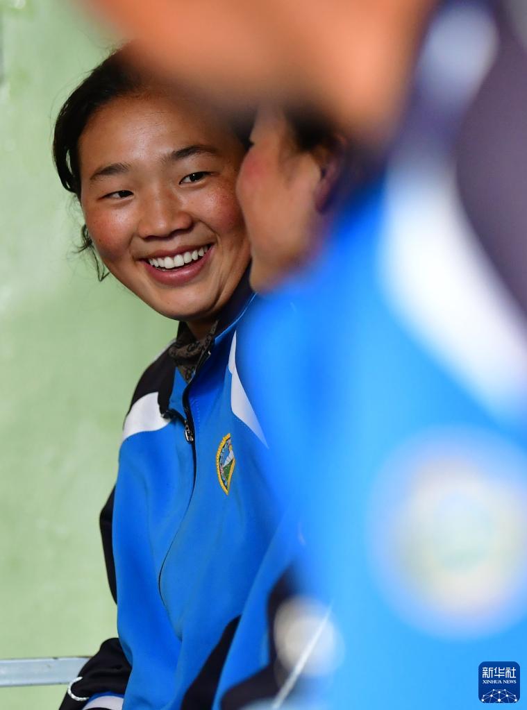 碌曲縣藏族中學(xué)的高三學(xué)生在教室里交流(8月30日攝)。新華社記者 杜哲宇 攝