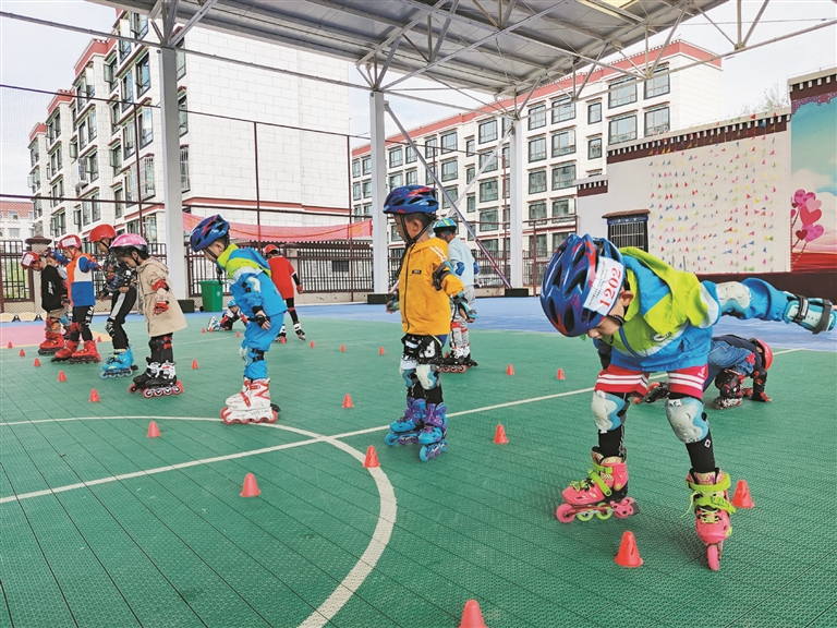 圖為孩子們正在上輪滑課。拉薩融媒記者 余洋洋攝