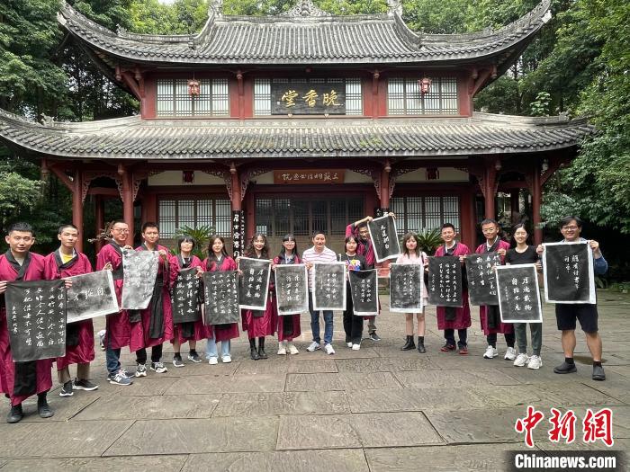 上香、祭文、行祭拜禮……在三蘇祠,臺(tái)灣大學(xué)生穿上漢服開展了祭拜活動(dòng),深入了解了中國(guó)傳統(tǒng)文化和禮儀。同時(shí),在趣味拓片活動(dòng)中,不少學(xué)生做了“但愿人長(zhǎng)久,千里共嬋娟”字樣的拓片,表達(dá)了對(duì)中秋佳節(jié)的美好祝福。