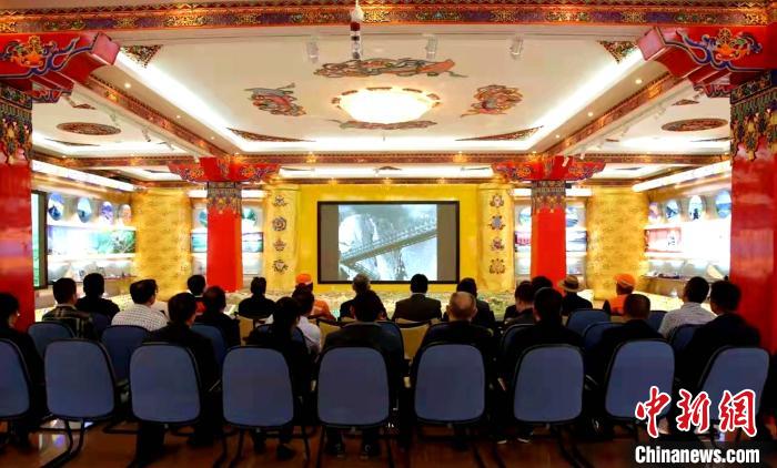 圖為參觀者在西藏自治區(qū)“兩路”精神紀(jì)念館觀看“兩路”宣傳片?!∥鞑刈灾螀^(qū)交通運(yùn)輸廳供圖