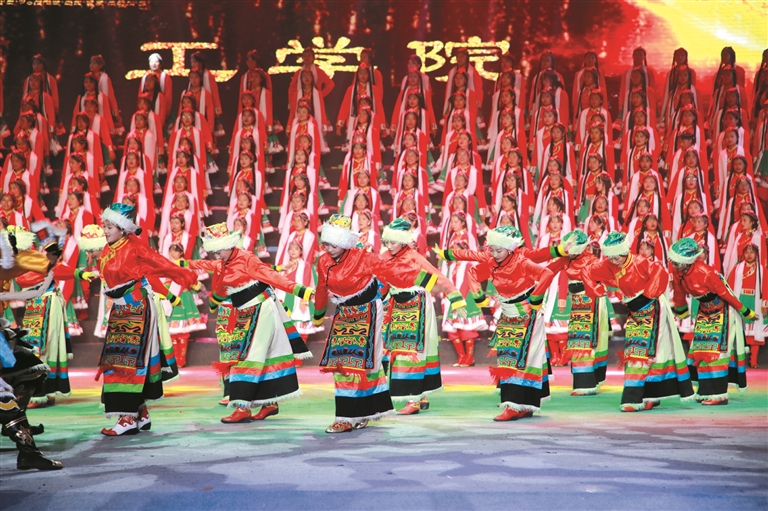 圖為文藝晚會(huì)上西藏大學(xué)師生們帶來(lái)優(yōu)美的舞蹈。拉薩融媒記者 楊濤攝