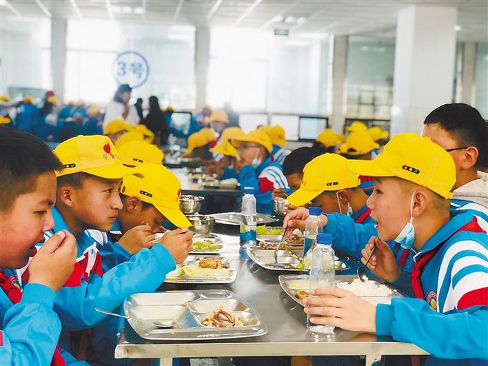 圖為學生在新校區(qū)食堂用餐。記者 央金 攝