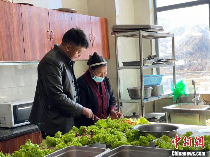 圖為達(dá)旦(左)正在查看“愛(ài)心午餐”的備餐情況?!≈x牧 攝