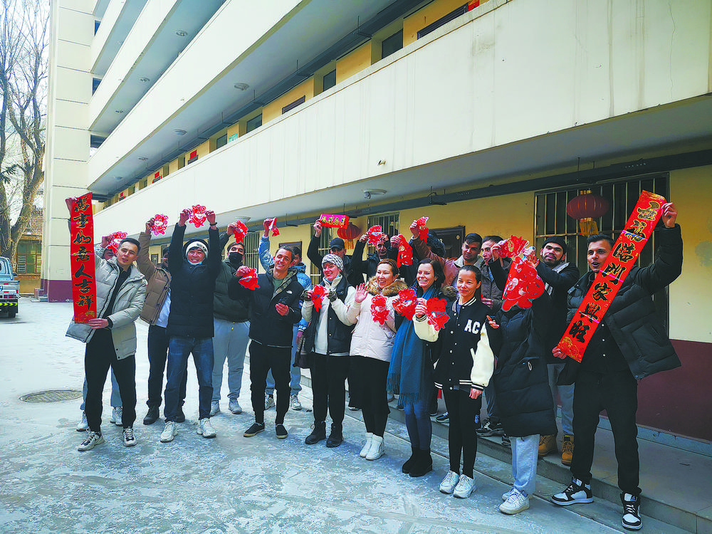 寫對聯(lián)、貼窗花、包餃子、聽故事……春節(jié)期間,青海民族大學(xué)22名來自美國、加拿大、挪威、阿根廷、土庫曼斯坦、烏茲別克斯坦、哈薩克斯坦等10個(gè)國家的留學(xué)生在青海過了一個(gè)快樂的“中國年”。