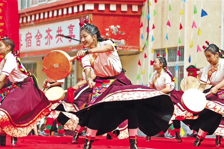 演職人員表演舞蹈《雪域暖陽》。記者 桑鄧旺姆 攝