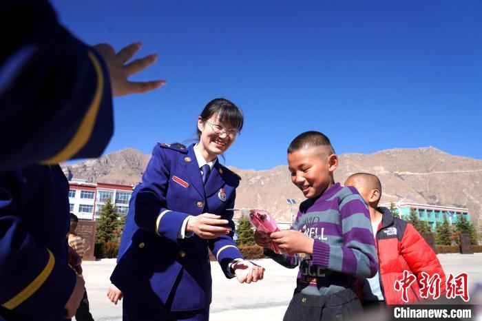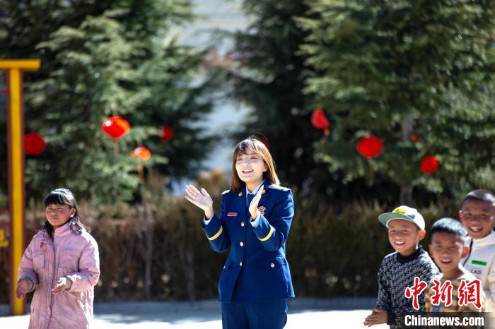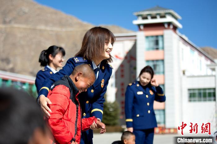 在活動中,志愿者們首先與孩子們進(jìn)行了自我介紹,詳細(xì)了解孩子們的生活、學(xué)習(xí)情況。同時,帶著孩子們開展跳繩、丟沙包、短跑等互動活動。隨后,藏族歌手、總隊(duì)教育宣傳處助理員索朗德吉為孩子們演唱歌曲,在動聽的旋律中不時傳來孩子們的歡聲笑語,其樂融融的氛圍,更是感染著在場的每一個人。
