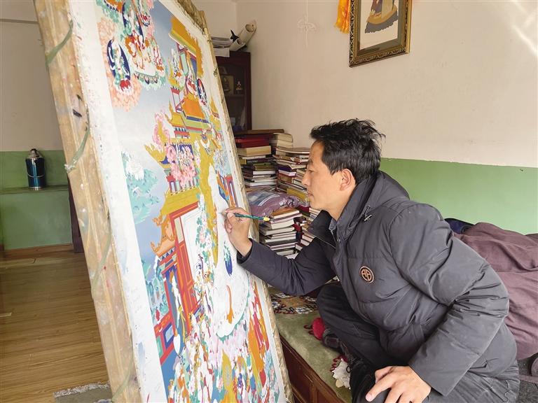 未來,貢覺杰將繼續(xù)創(chuàng)作新題材唐卡,比如說選擇畫一些西藏的自然風(fēng)光、高原獨有的保護動物以及西藏的一些歷史文物遺跡等。“這樣的創(chuàng)作,可以讓大家通過唐卡這種喜聞樂見的藝術(shù)形式,直觀感受西藏的歷史文化底蘊和自然風(fēng)光?!必曈X杰說。