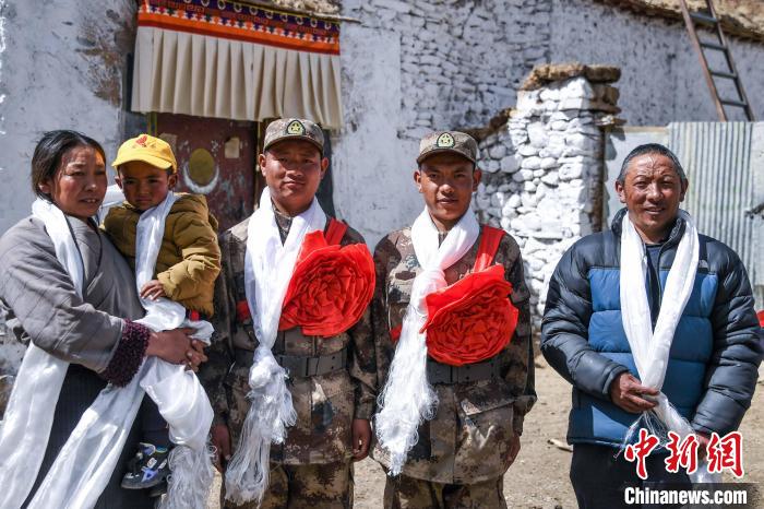 圖為拉薩市林周縣旁多鄉(xiāng)入伍兄弟和家人合影?!≈斐?攝