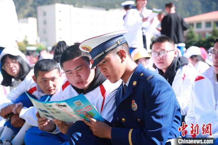 圖為林芝市森林消防支隊(duì)走進(jìn)校園宣傳防火知識(shí)?!∥骼@拉翁 攝