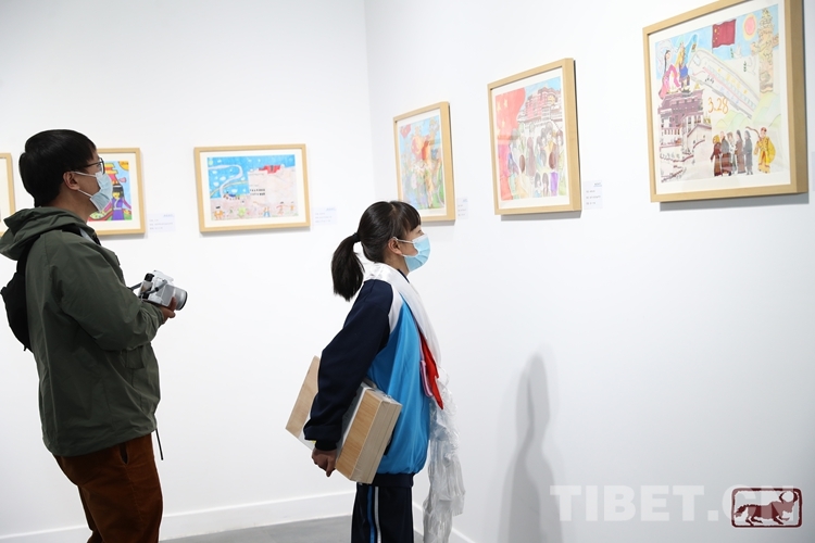 此次展出的百余幅作品均為拉薩市中小學(xué)生誠意之作,他們用畫筆描繪出西藏和諧美麗、文明富強(qiáng)的新面貌,雖稚嫩卻靈氣十足,雖年少卻志在萬里。數(shù)尺之雅,足顯拳拳之心;片紙之外,可見耿耿情懷。漫步在展覽現(xiàn)場,一幅幅色彩鮮活、筆觸稚嫩的繪畫作品,蘊(yùn)涵著小畫家們對美好生活的追求、對幸福生活的感恩、對未來生活的憧憬,展現(xiàn)出他們熱愛黨、熱愛祖國、熱愛家鄉(xiāng)、熱愛生活積極向上的精神面貌。