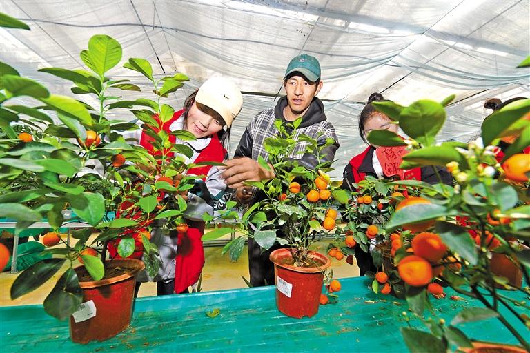 圖為西藏職業(yè)技術(shù)學(xué)院的學(xué)生在園區(qū)工作人員的指導(dǎo)下學(xué)習(xí)種植管理技術(shù)。記者 唐斌 攝