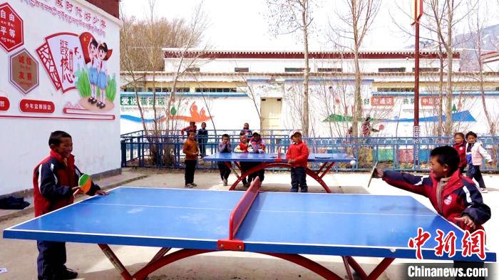 圖為多油完小學生在課余時間打乒乓球?!∝暽@?攝