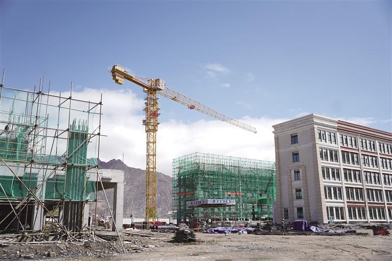 16日,記者在施工現(xiàn)場看到,拉薩市實驗小學(xué)教育城分校北面,很大一塊空地被擋板圍了起來,大型起吊機正在擋板內(nèi)來回運轉(zhuǎn)。其中,有三棟樓已拔地而起,從外面看主體已經(jīng)竣工。