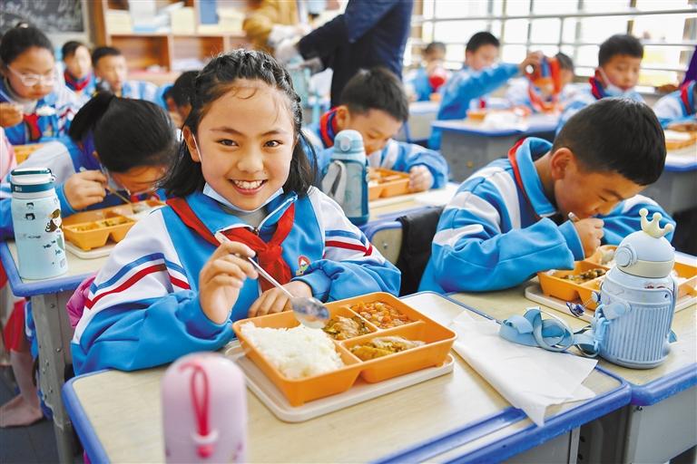 圖為拉薩市實驗小學(xué)東城分校小學(xué)生在享用營養(yǎng)午餐(5月12日攝)。新華社記者 張汝鋒 攝