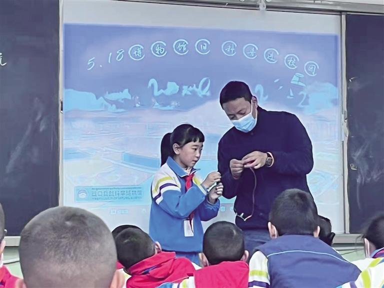 工作人員為學生們講解科普知識。記者 王靜 攝