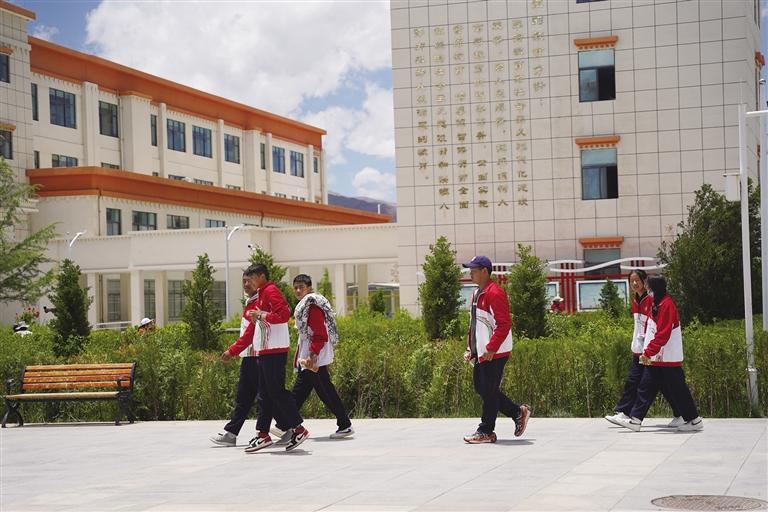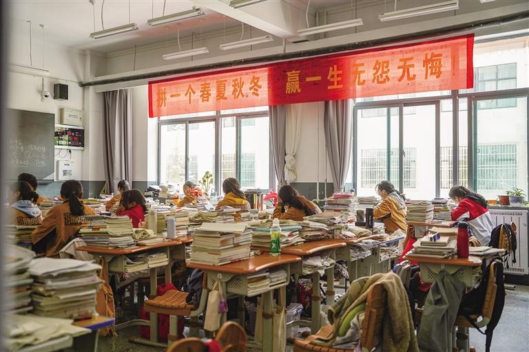 走進高三年級教學樓,走廊里不時傳來朗朗讀書聲,每一個角落都充斥著同學們?yōu)榍啻汉蛪粝電^力拼搏的氣息。在高三(9)班的教室里,學生們正在全神貫注地聽課,時而看課本、時而做筆記,神情認真且專注。桌面上堆積的高高的書籍、練習冊和教室墻上掛著的高考倒計時牌都在時刻提醒著同學們,高考離他們越來越近了?!艾F(xiàn)在是高考復習的關鍵時期,同學們學得很認真,班里的學習氛圍特別好,大家互相幫助、共同進步。希望我們通過自己的努力,考上理想的大學,實現(xiàn)自己的夢想。”學生斯朗卓瑪告訴記者。