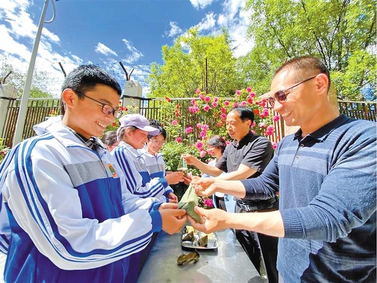 為弘揚中華優(yōu)秀傳統(tǒng)文化,促進漢藏文化交流,端午節(jié)期間,拉薩市第一中學(xué)教育援藏團隊的老師為學(xué)生送上來自江蘇老家親人包的粽子。