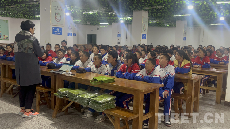圖為專業(yè)講師為昌都市第二初級中學(xué)學(xué)生講解青少年自我保護(hù)、兒童權(quán)益維護(hù)知識